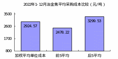 冶金焦12月份加权平均折算成干基的采购成本2644.73元/吨,环比升高107.58元/吨,升幅为4.24%。1—12月累计平均折算成干基的采购成本为2924.57元/吨,同比升高62.60元/吨,升幅为2.19%。