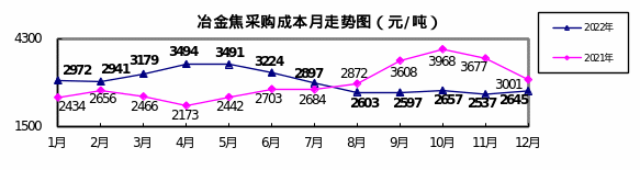 2022年,炼焦煤(1848, 1.50, 0.08%)累计采购成本同比增长24.91%;冶金焦同比增长2.19%;国产铁精矿同比下降26.06%,进口粉矿同比下降24.16%;废钢同比下降4.67%。